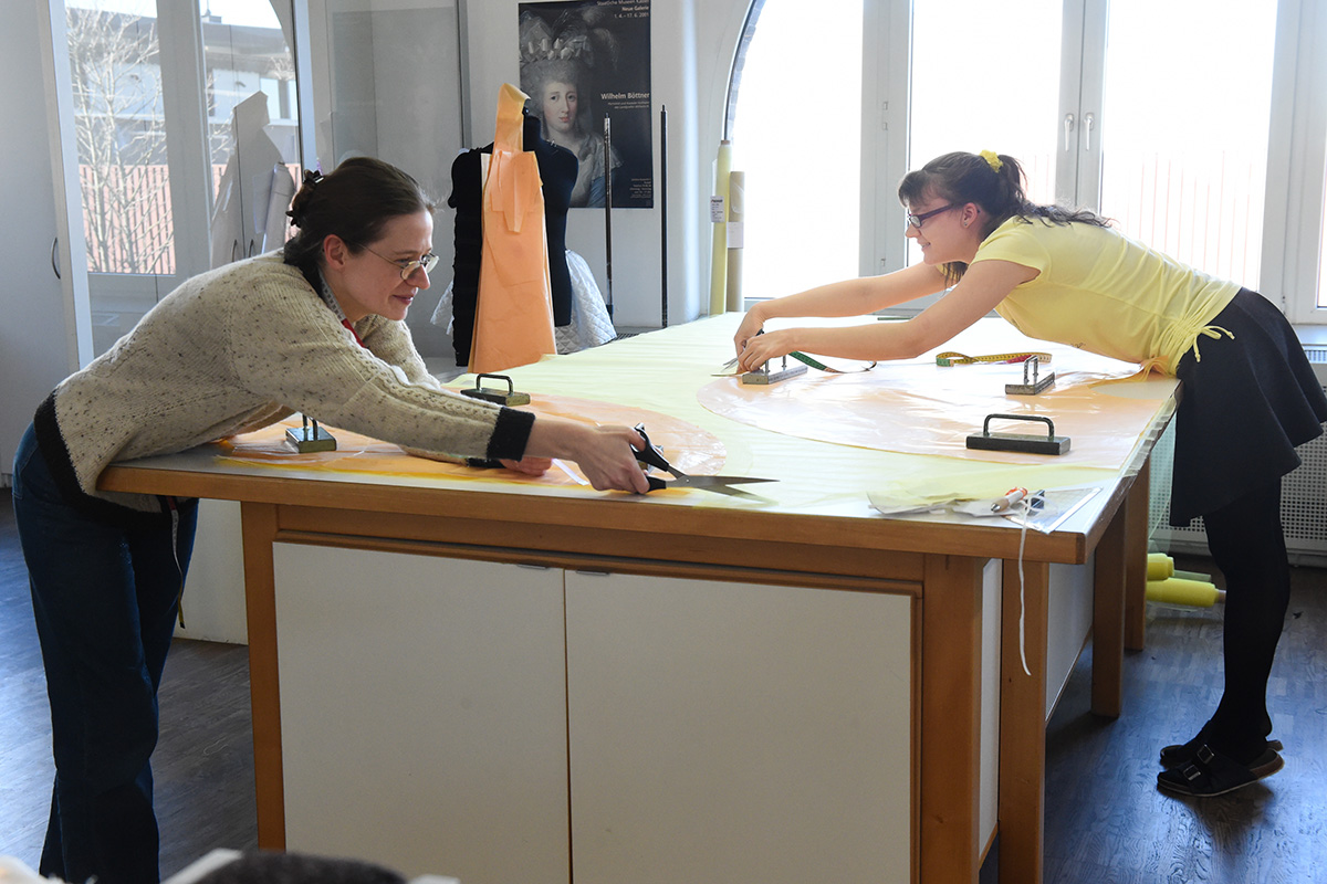 das gewand ist strukturell bestens aufgestellt und somit in der Lage, umfangreiche, aufwendige und künstlerisch anspruchsvollste Entwürfe umzusetzen. Ein großes Team von langjährigen, erfahrenen Gewandmeistern und Schneiderinnen arbeitet dort im Zusammenspiel mit Produktionsassistenz und Büroteam.